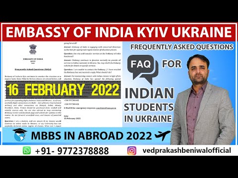 Ukraine latest News | Indian Embassy In Kyiv Ukraine | FAQ | MBBS in Abroad 2022