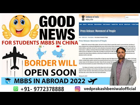 EMBASSY OF INDIA BEIJING NEWS FOR INDIAN STUDENTS STUDYING MBBS IN CHINA - BORDER WILL OPEN SOON
